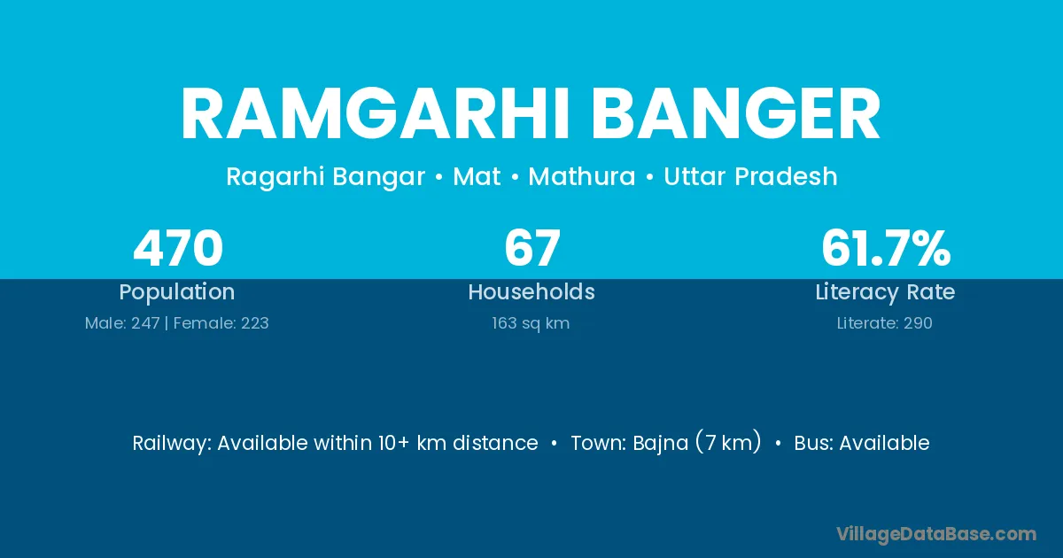 Bajna (7 km) is the nearest town to Ramgarhi Banger village for major economic activities and is located approximately 7 km away.