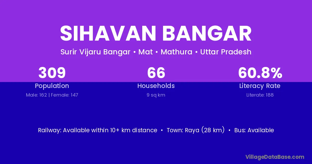 Raya (28 km) is the nearest town to Sihavan Bangar village for major economic activities and is located approximately 28 km away.