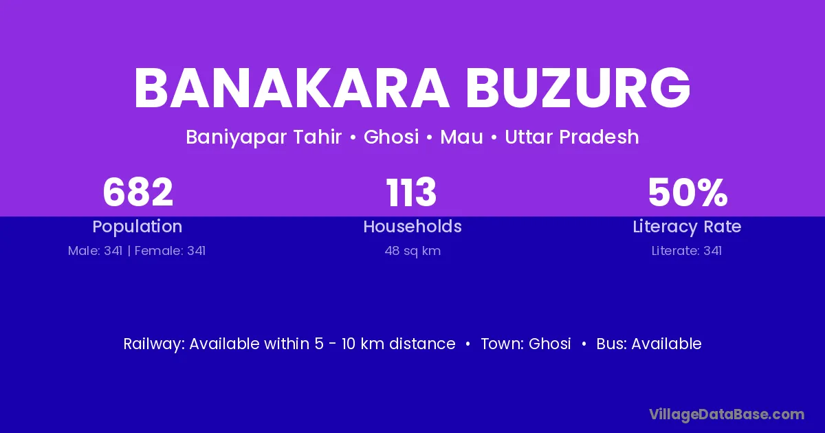Ghosi is the nearest town to Banakara Buzurg village for major economic activities