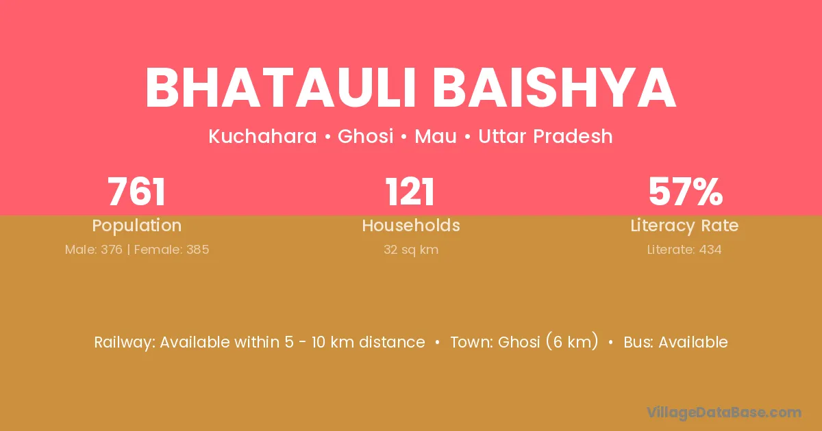 Ghosi (6 km) is the nearest town to Bhatauli Baishya village for major economic activities and is located approximately 6 km away.