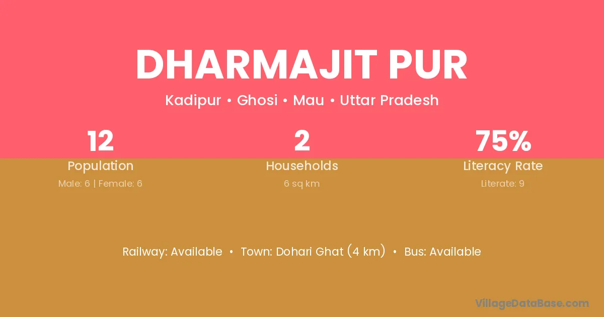 Dharmajit Pur village has a total population of 12 people, of which 6 are males and 6 are females.