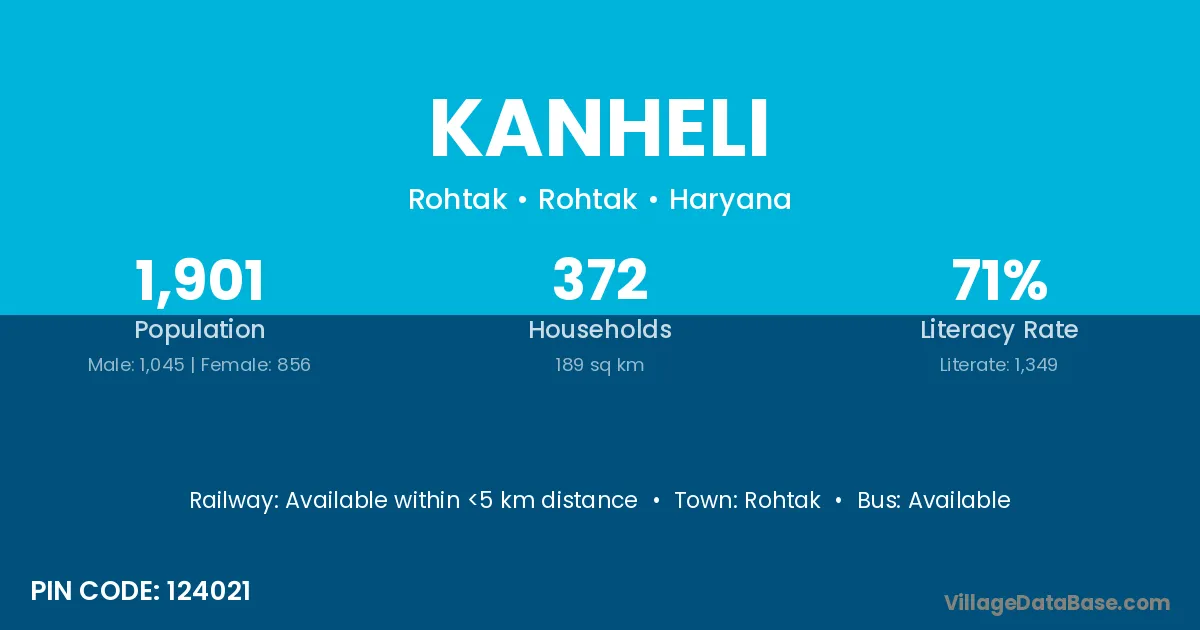 The literacy rate of Kanheli village is 47.46%. Male literacy stands at 56.42% and female literacy at 39.97%.