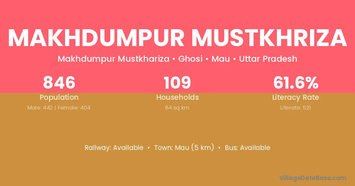 Mau (5 km) is the nearest town to Makhdumpur Mustkhriza village for major economic activities and is located approximately 5 km away.