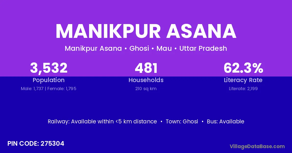 Ghosi is the nearest town to Manikpur Asana village for major economic activities