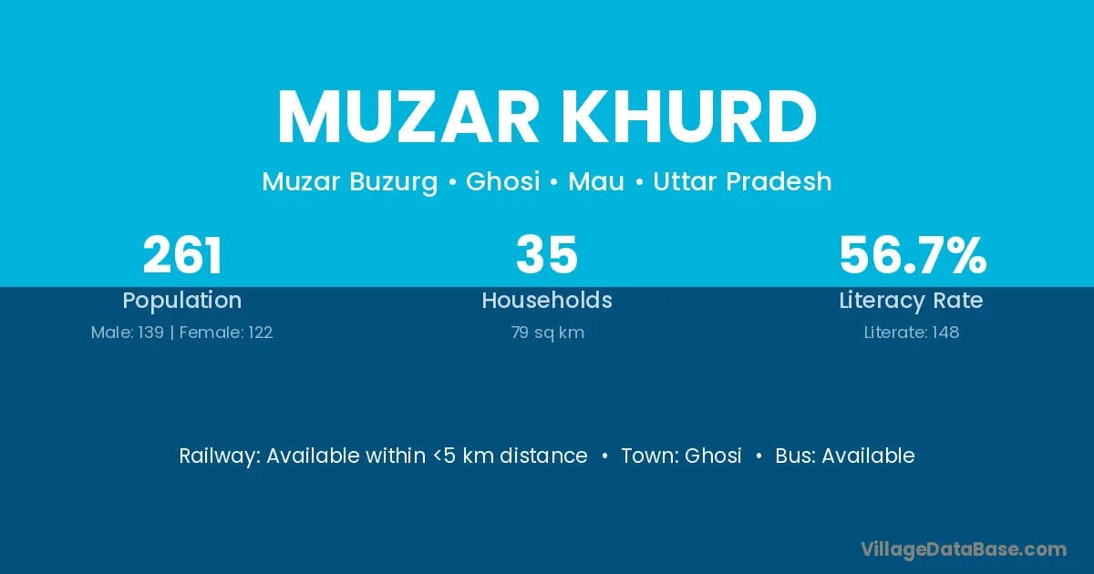 Ghosi is the nearest town to Muzar Khurd village for major economic activities