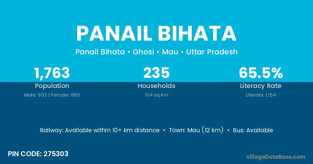 Mau (12 km) is the nearest town to Panail Bihata village for major economic activities and is located approximately 12 km away.