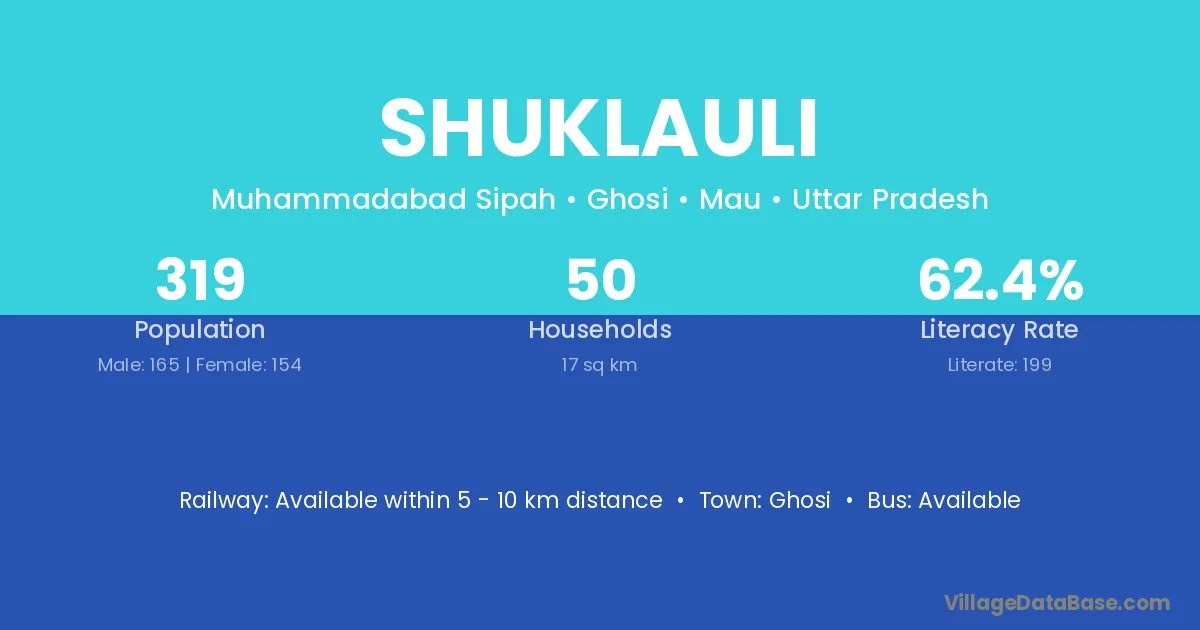 Ghosi is the nearest town to Shuklauli village for major economic activities