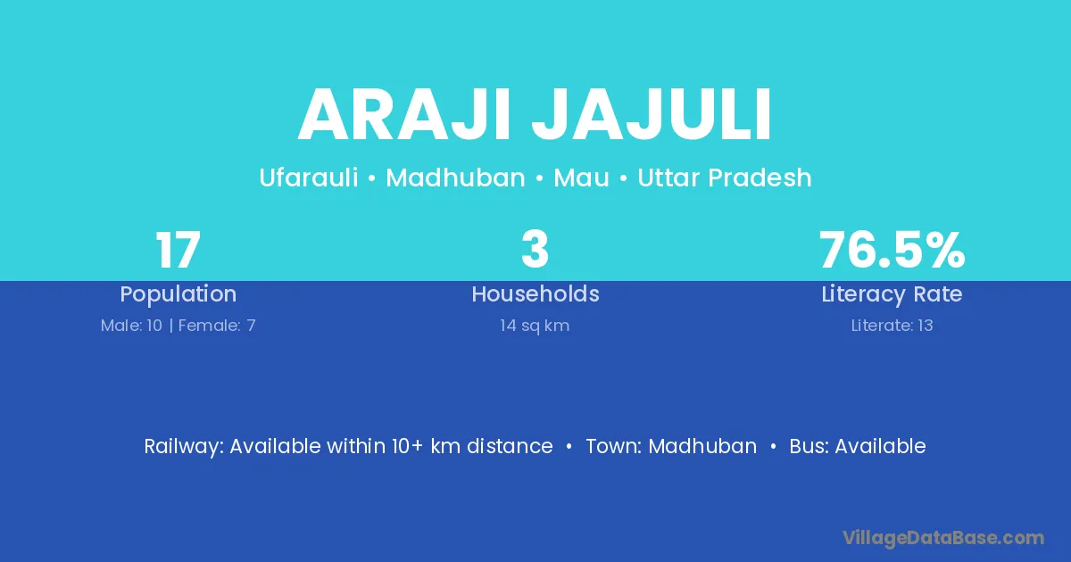 Araji Jajuli village has a total population of 17 people, of which 10 are males and 7 are females.