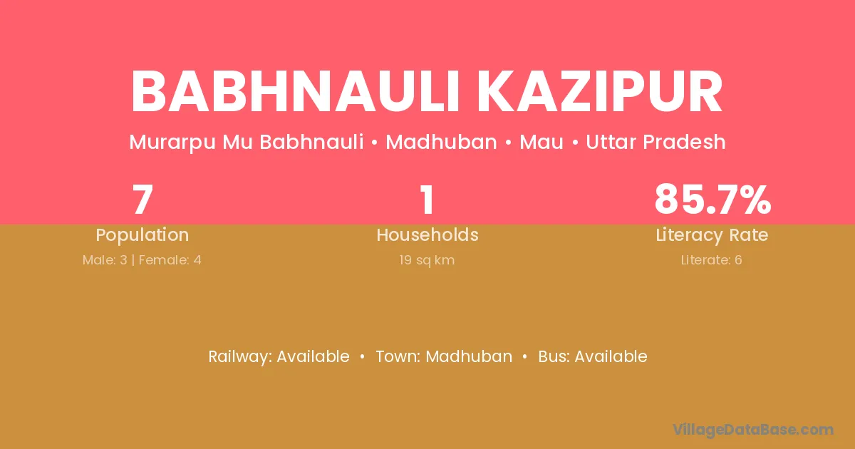 Babhnauli Kazipur village has a total population of 7 people, of which 3 are males and 4 are females.