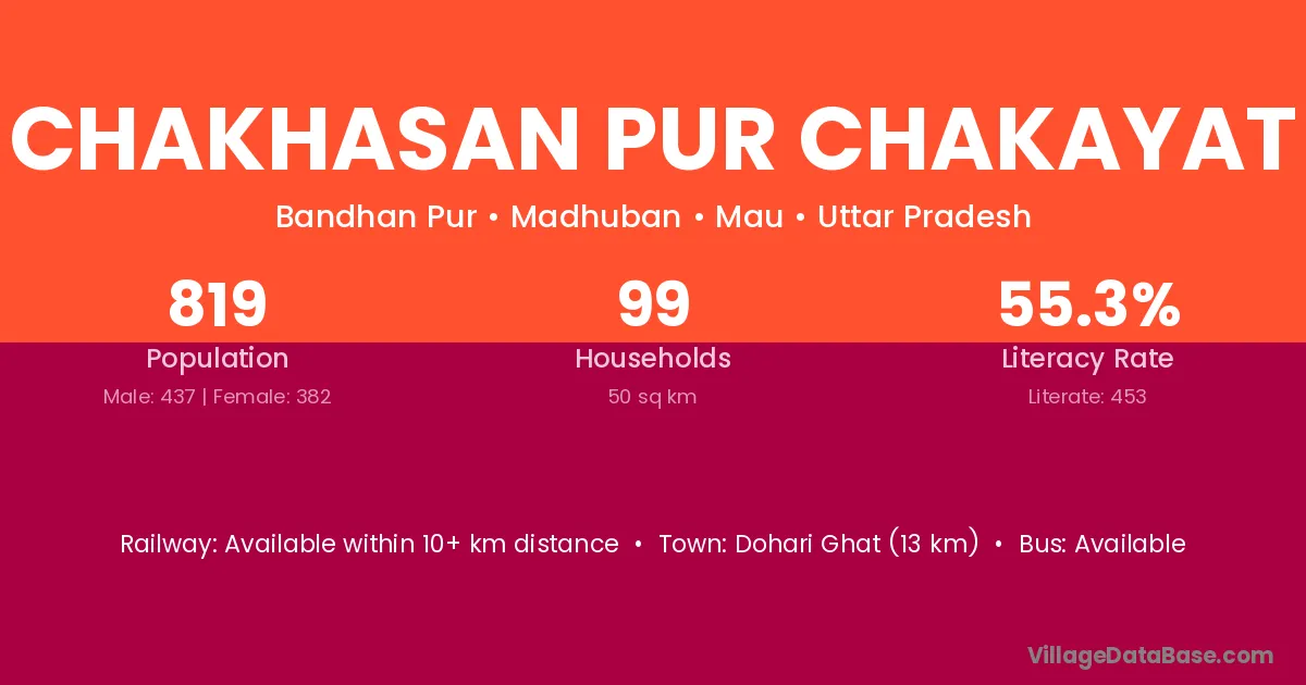 Chakhasan Pur Chakayat village has a total population of 819 people, of which 437 are males and 382 are females.