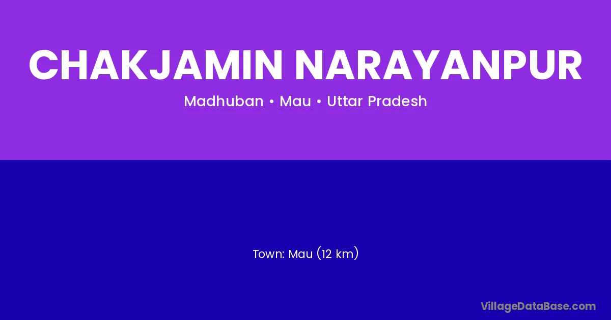 Mau (12 km) is the nearest town to Chakjamin Narayanpur village for major economic activities and is located approximately 12 km away.