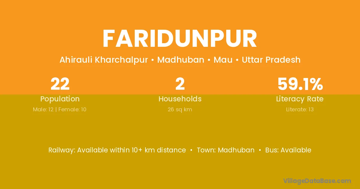 Faridunpur village has a total population of 22 people, of which 12 are males and 10 are females.