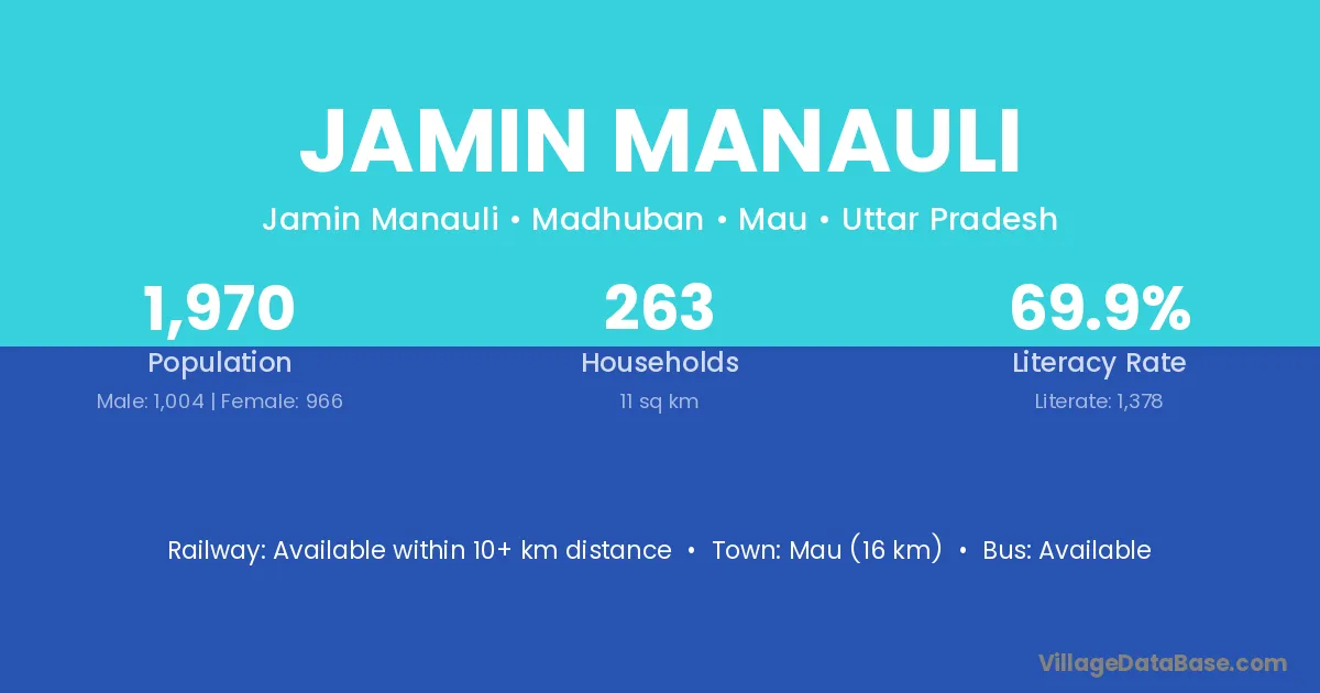 Mau (16 km) is the nearest town to Jamin Manauli village for major economic activities and is located approximately 16 km away.