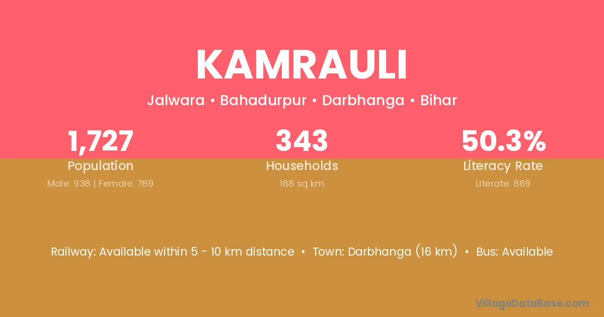Kamrauli village has a total population of 830 people, of which 450 are males and 380 are females.