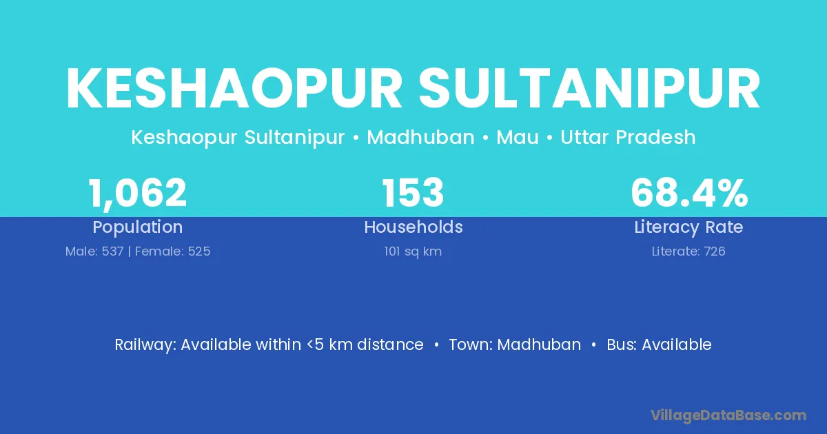 Keshaopur Sultanipur village has a total population of 1,062 people, of which 537 are males and 525 are females.