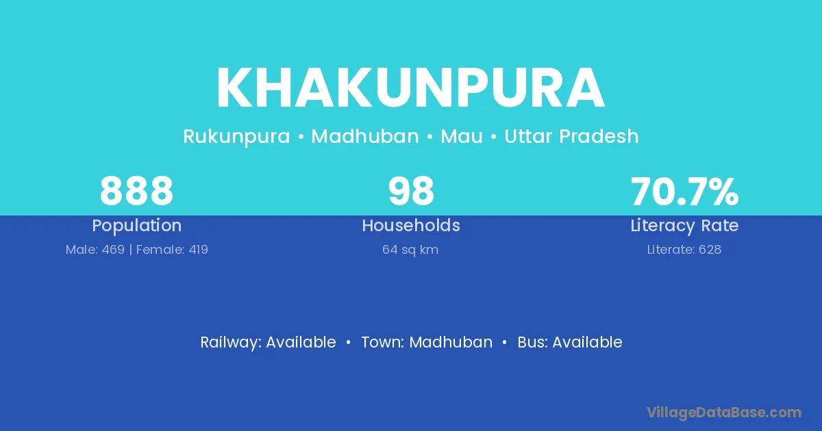 Khakunpura village has a total population of 888 people, of which 469 are males and 419 are females.