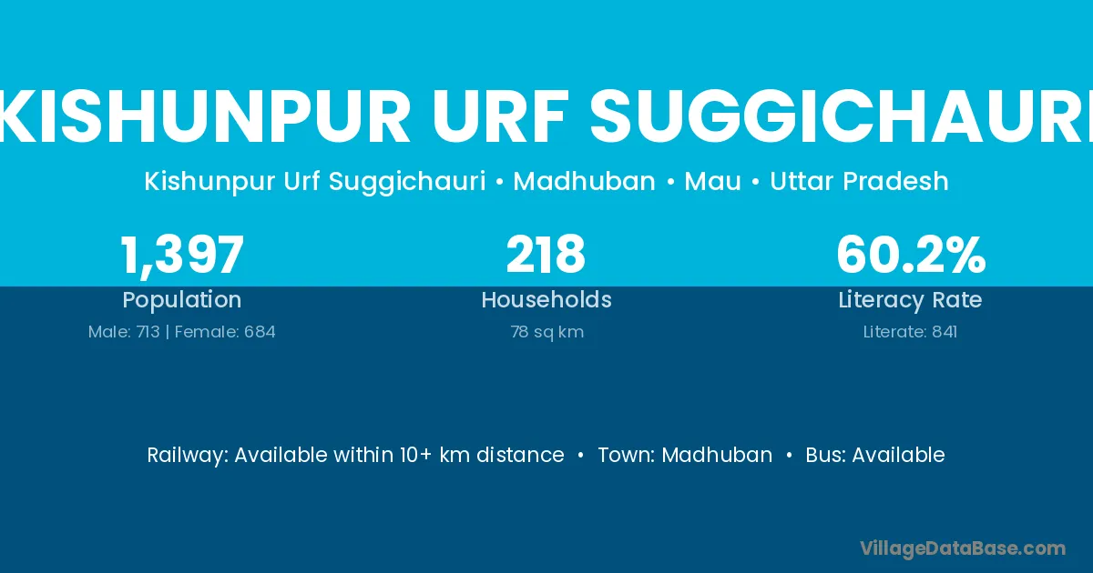 Kishunpur Urf Suggichauri village has a total population of 1,397 people, of which 713 are males and 684 are females.