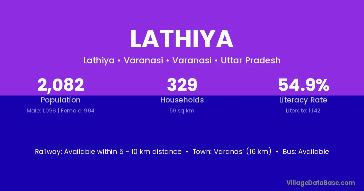 Mau (17 km) is the nearest town to Lathiya village for major economic activities and is located approximately 17 km away.