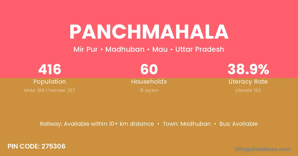 Panchmahala village has a total population of 416 people, of which 189 are males and 227 are females.