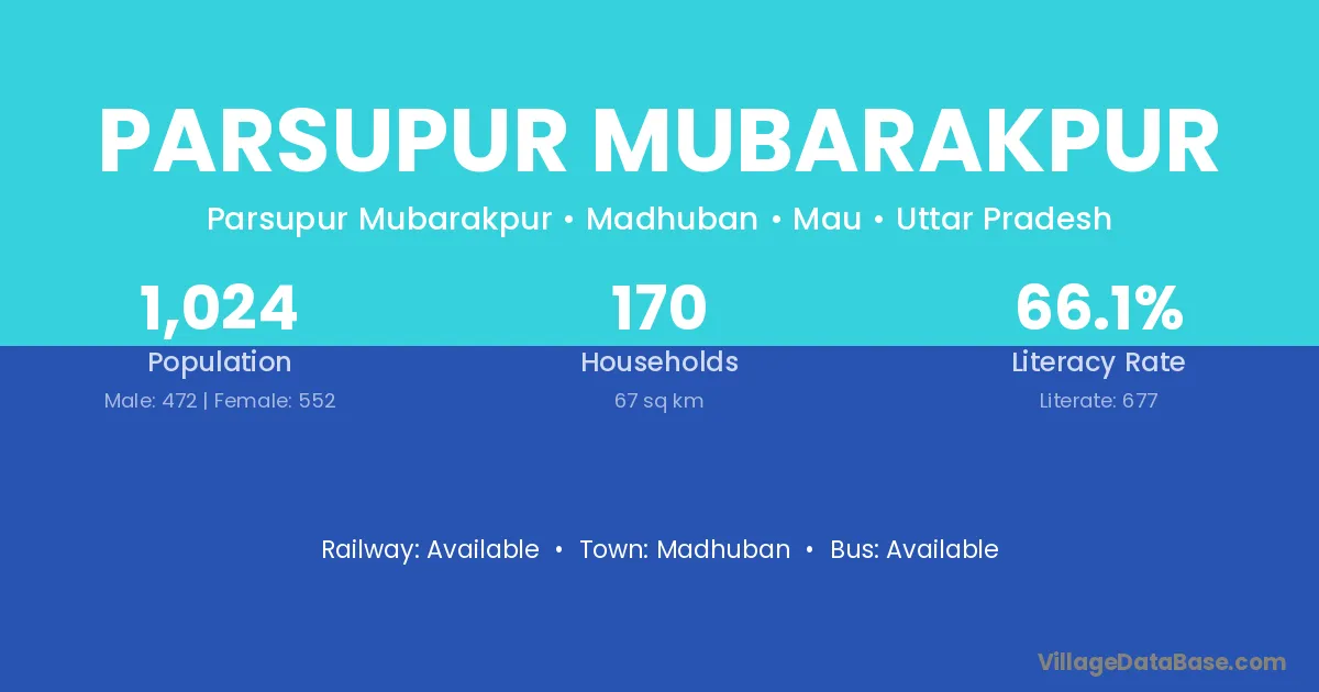 Parsupur Mubarakpur village has a total population of 1,024 people, of which 472 are males and 552 are females.