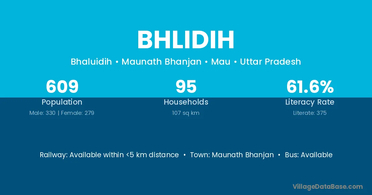 Maunath Bhanjan is the nearest town to Bhlidih village for major economic activities