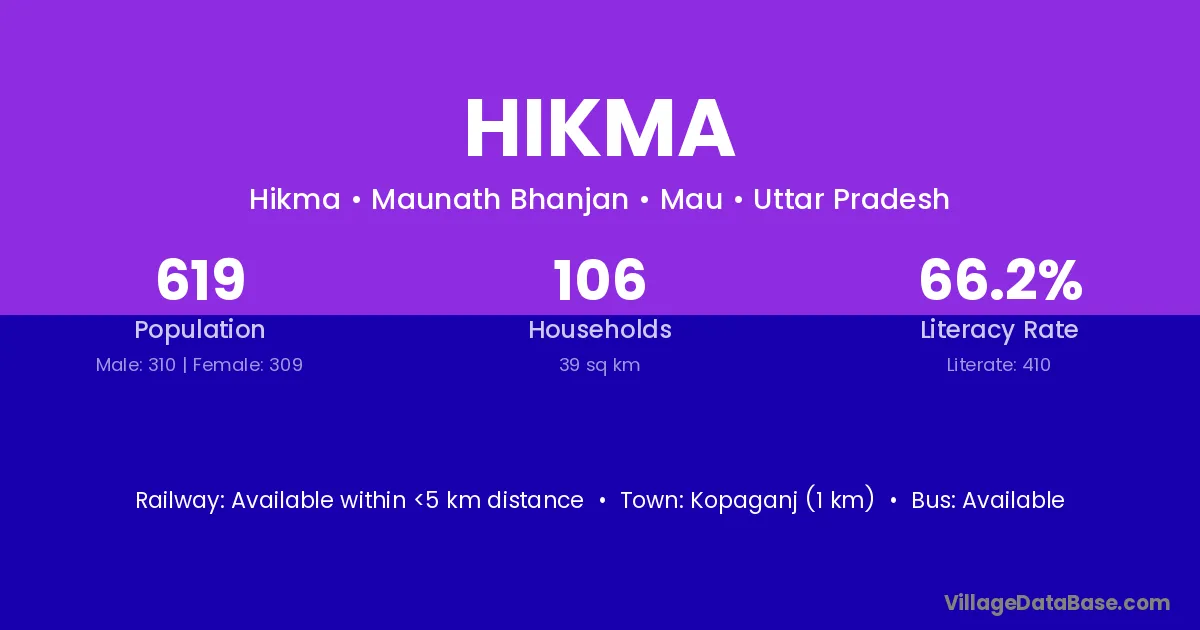 Kopaganj (1 km) is the nearest town to Hikma village for major economic activities and is located approximately 1 km away.
