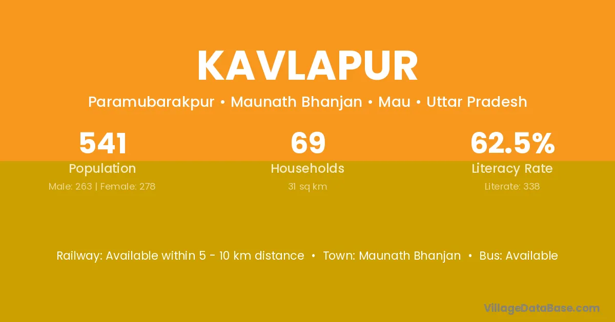 Kavlapur village has a total population of 541 people, of which 263 are males and 278 are females.