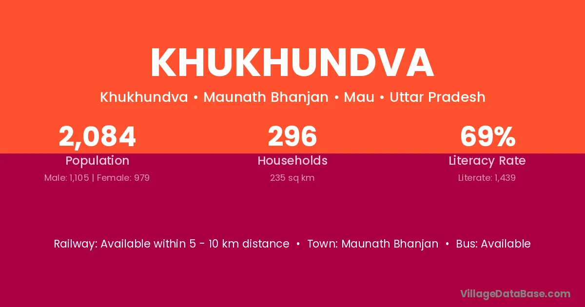 Maunath Bhanjan is the nearest town to Khukhundva village for major economic activities
