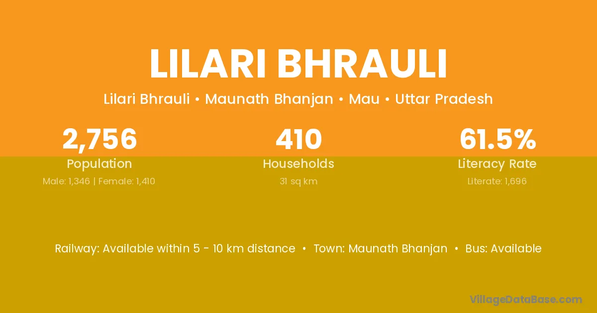 Maunath Bhanjan is the nearest town to Lilari Bhrauli village for major economic activities