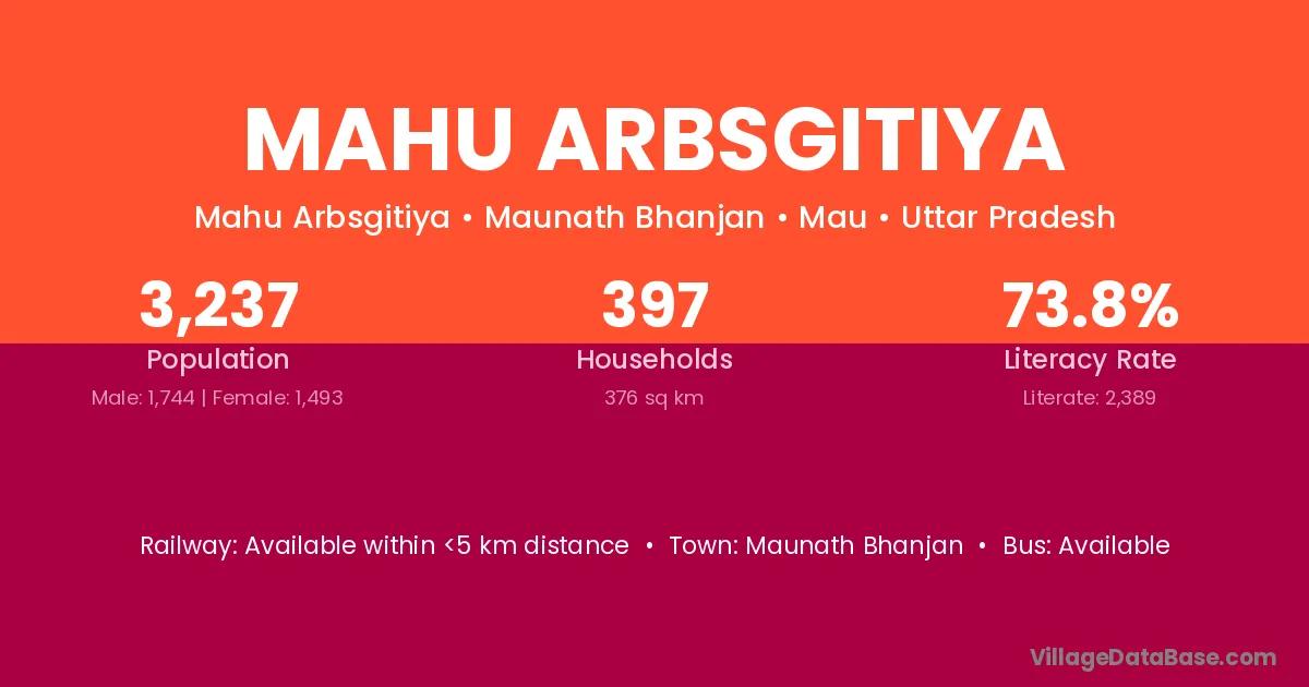 Maunath Bhanjan is the nearest town to Mahu Arbsgitiya village for major economic activities