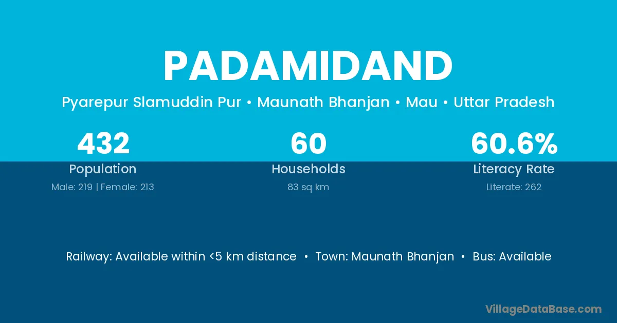 Maunath Bhanjan is the nearest town to Padamidand village for major economic activities