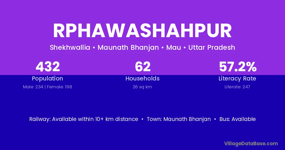 Rphawashahpur village has a total population of 432 people, of which 234 are males and 198 are females.
