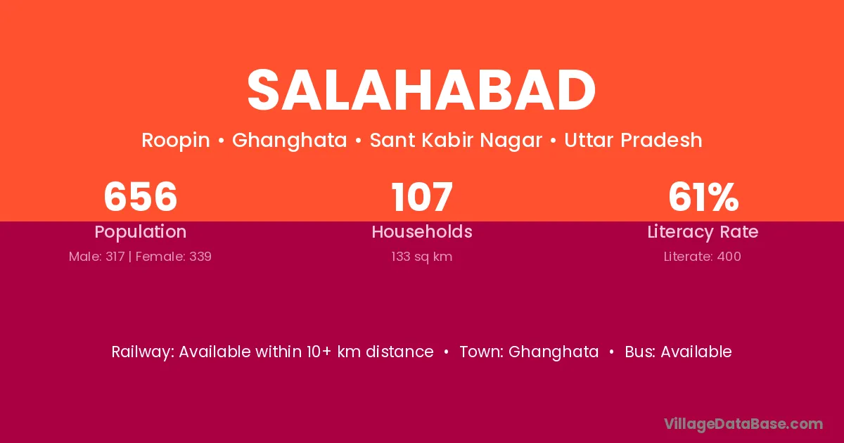 Salahabad village has a total population of 4,928 people, of which 2,526 are males and 2,402 are females.