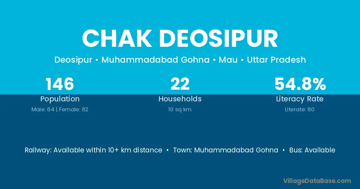 Muhammadabad Gohna is the nearest town to Chak Deosipur village for major economic activities
