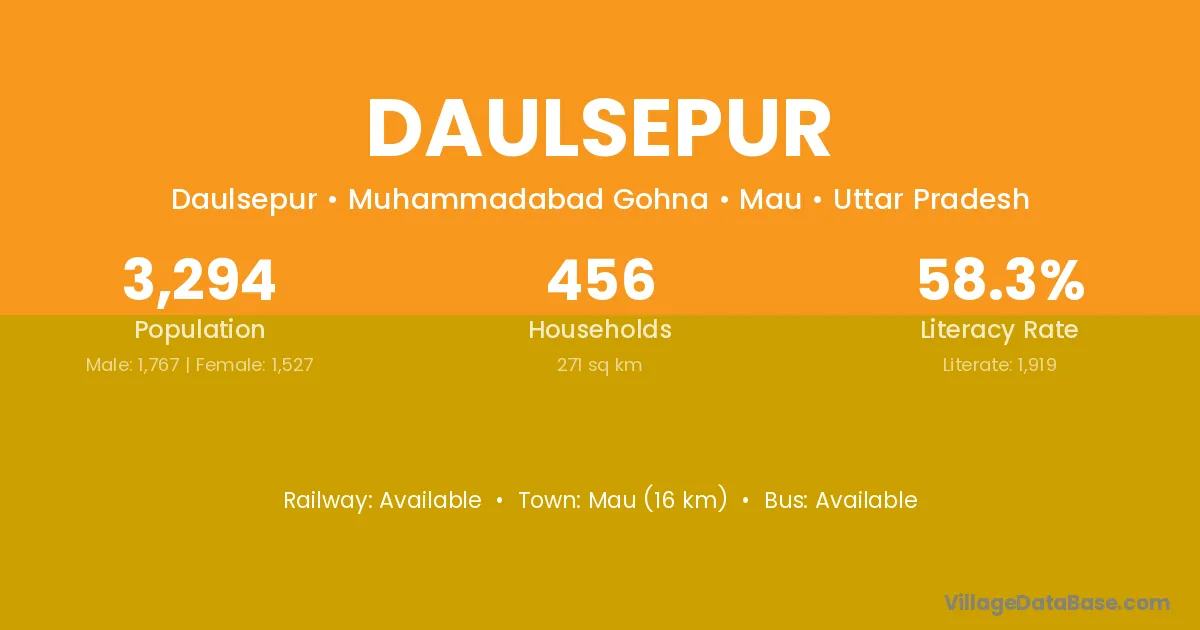 Mau (16 km) is the nearest town to Daulsepur village for major economic activities and is located approximately 16 km away.