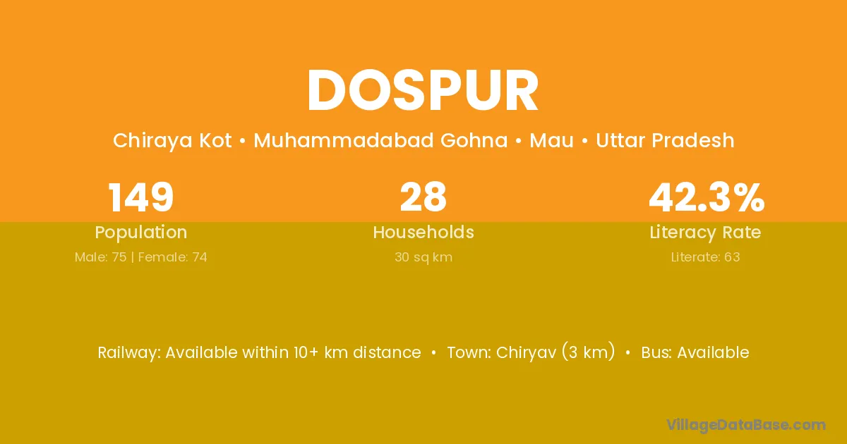 Dospur village has a total population of 149 people, of which 75 are males and 74 are females.