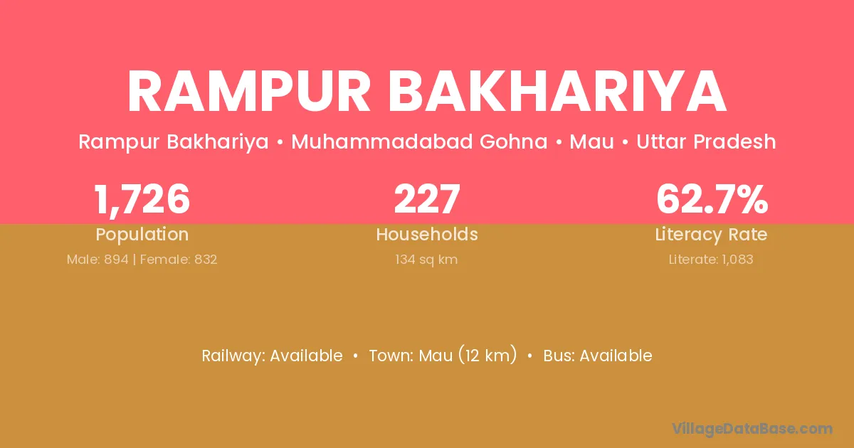 Mau (12 km) is the nearest town to Rampur Bakhariya village for major economic activities and is located approximately 12 km away.