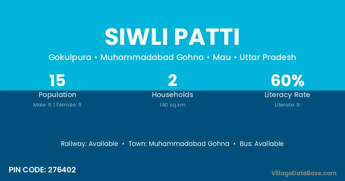 Muhammadabad Gohna is the nearest town to Siwli Patti village for major economic activities