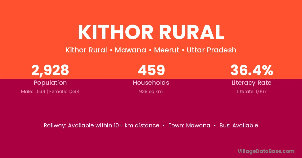 Mawana is the nearest town to Kithor Rural village for major economic activities