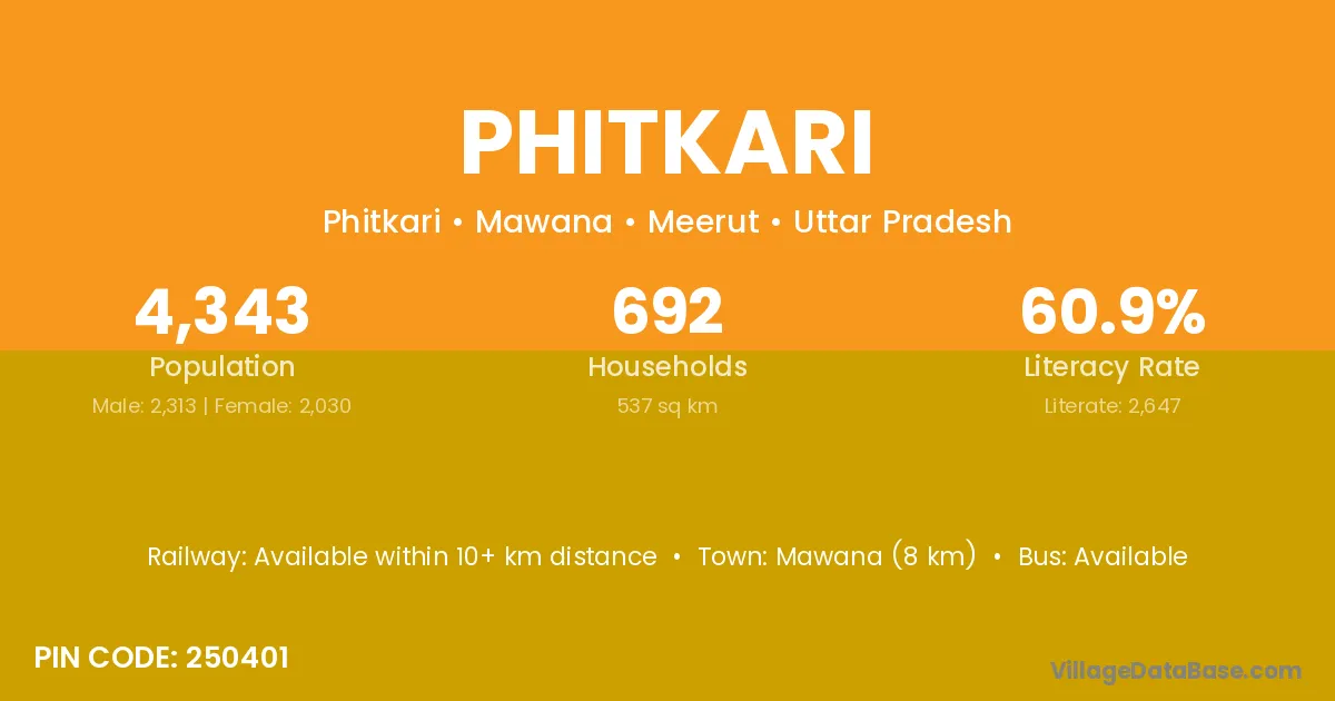 Mawana (8 km) is the nearest town to Phitkari village for major economic activities and is located approximately 8 km away.