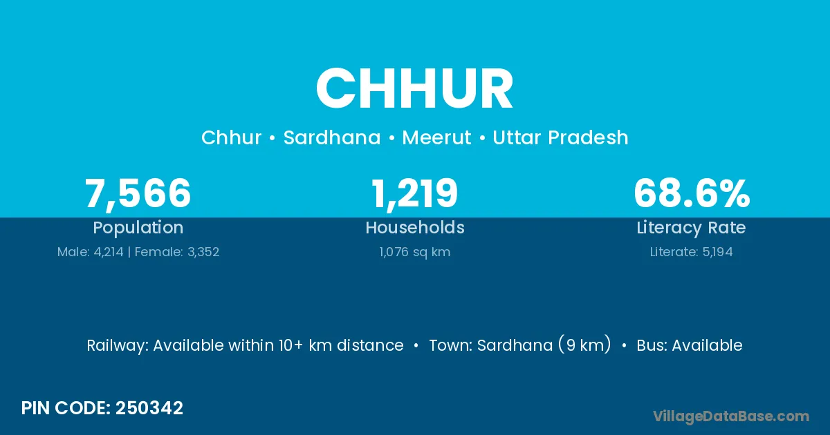 Sardhana (9 km) is the nearest town to Chhur village for major economic activities and is located approximately 9 km away.