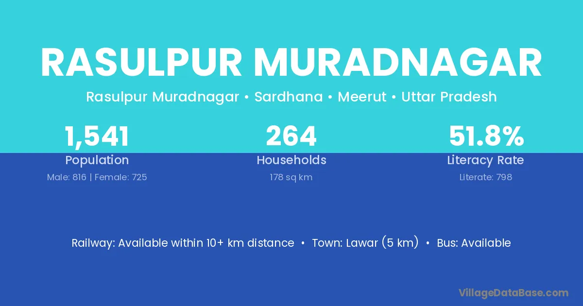 Lawar (5 km) is the nearest town to Rasulpur Muradnagar village for major economic activities and is located approximately 5 km away.