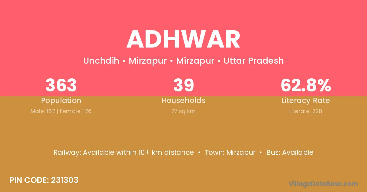 Varanasi (36 km) is the nearest town to Adhwar village for major economic activities and is located approximately 36 km away.