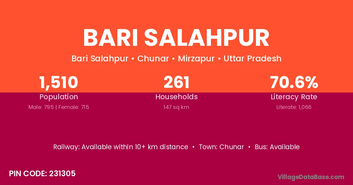 Chunar is the nearest town to Bari Salahpur village for major economic activities