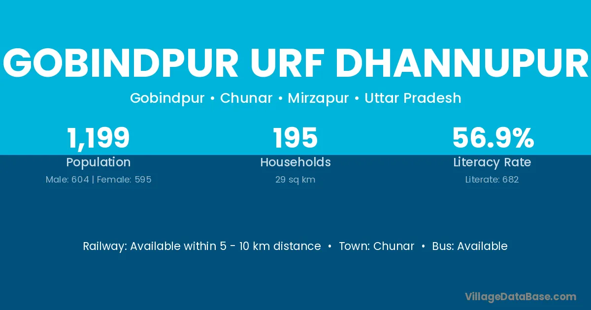 Gobindpur Urf Dhannupur village has a total population of 1,199 people, of which 604 are males and 595 are females.
