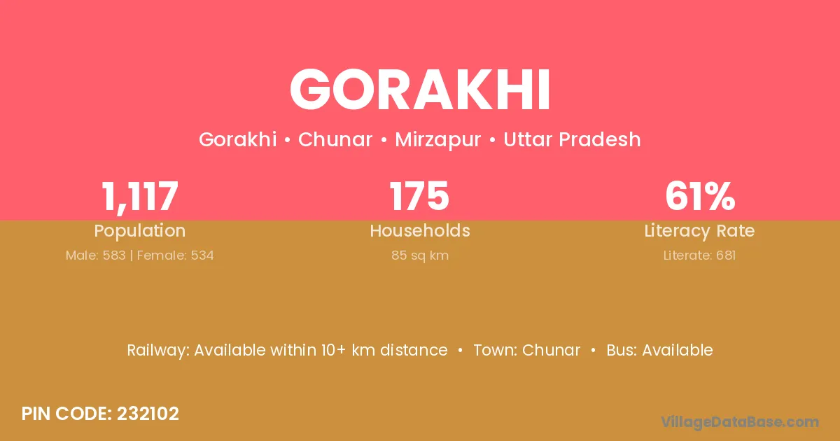 Chunar is the nearest town to Gorakhi village for major economic activities