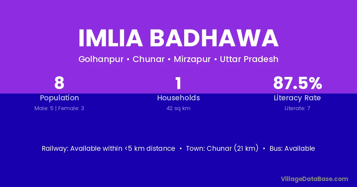 Imlia Badhawa village has a total population of 8 people, of which 5 are males and 3 are females.