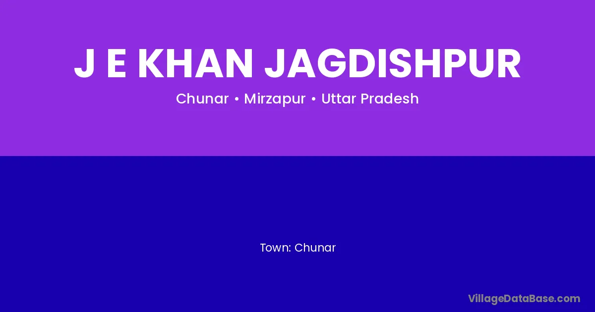 Chunar is the nearest town to J E Khan Jagdishpur village for major economic activities