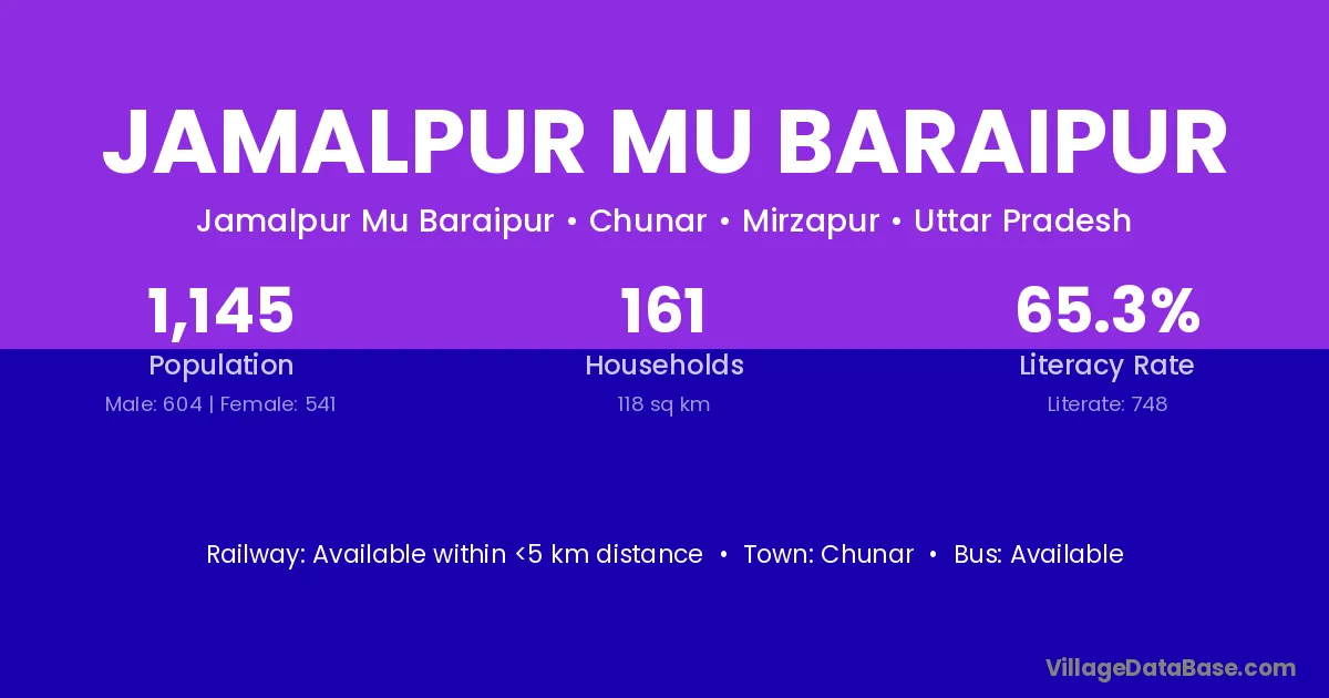 Jamalpur Mu Baraipur village has a total population of 1,145 people, of which 604 are males and 541 are females.