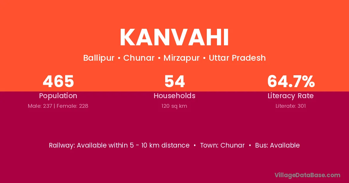 Kanvahi village has a total population of 465 people, of which 237 are males and 228 are females.